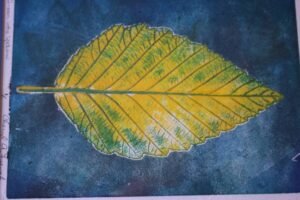 Leaf printing involves inking a background plate and a leaf (or leaves) and putting the combination through a small hand press. The results are stunning. All the necessary materials including a variety of leaves will be supplied for free – although bringing your own favorite leaf selection is encouraged. The press and ink will be supplied as well. The event is open to all.